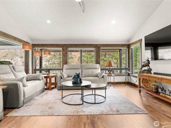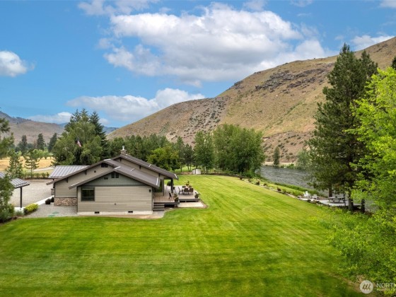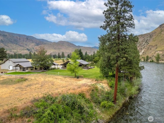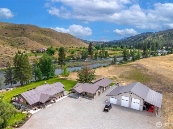 Riverfront Estate on 10.50 Acres: Delight in over 1,200 feet of waterfront featuring impressive river vistas from inside the home. The main residence and guest cabin have been elegantly updated with premium finishes; it includes 3 BD, 2 BA, and a gourmet kitchen showcasing a beautiful Italian gas range. Both the residence and guest cabin are fully furnished, making it move-in ready. The appealing guest cabin offers 2 BD, 1 BA, along with a spacious sunroom that can function as a bunk room, studio, or recreational space. Enjoy outdoor living year-round with multiple patios and decks, plus a sizable heated and insulated workshop/garage. The second parcel has a well & septic system installed. Turn it into your dream home or serene retreat!