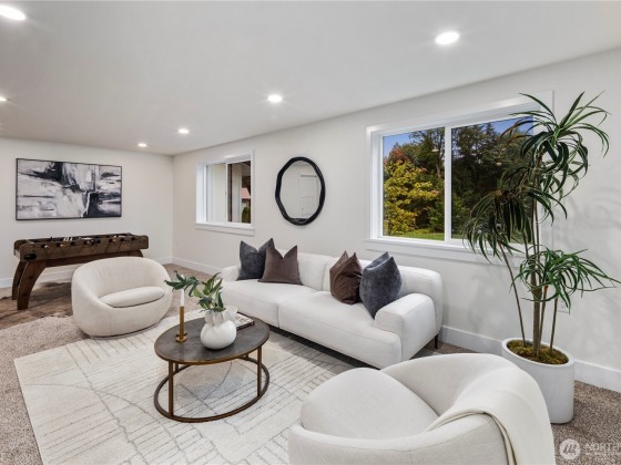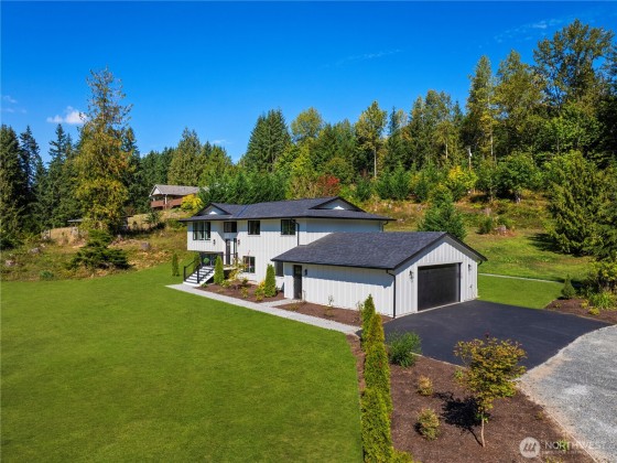 Experience estate-style living in this exquisite 4-bed, 2.5-bath home set on 5 private acres in Snohomish. Spanning 2,422 sqft, this residence showcases soaring vaulted ceilings, an open layout, and walls of windows flooding the home with natural light. The chef’s kitchen impresses with custom white cabinetry, quartz counters, oversized island, stainless appliances, and designer tile. Luxurious updates include spa-inspired baths with heated tile floors, hardwoods, new roof, windows, and paint. Lower level offers a grand family room with wet bar and spacious bedrooms. Complete with a 2-car garage and expansive 4-car shop, this rare retreat is truly one of a kind.