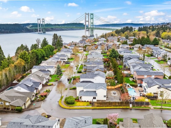 Welcome to your dream escape inside Bridgeview Estates gated community! From the moment you enter, custom iron stair railings elevate the foyer, and a thoughtful layout makes every square foot count. Fresh INTERIOR PAINT and new FLOORING flow to an enchanting backyard—perfect for entertaining with partial views of the Narrows Bridge. Major upgrades include a NEW ROOF, NEW HEAT PUMP, NEW FURNACE, NEW BLINDS, AND MORE, ensuring comfort and peace of mind year-round. Two cozy fireplaces invite you to unwind, while a versatile bonus room adapts to your lifestyle. Enjoy low-maintenance living with beaches, parks, and trails nearby.