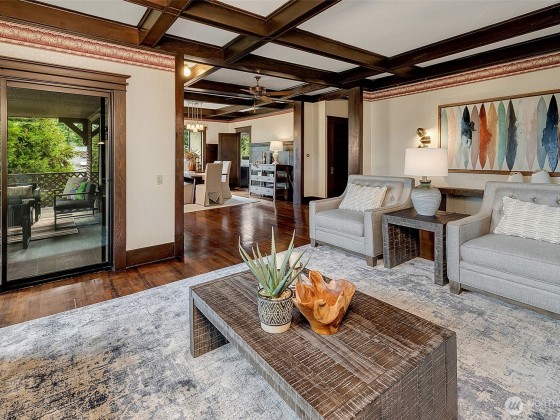Amazing Craftsman, Lk/Mountain/Mercer Isl. views! Perched above Lk WA on secluded double-lot in prime Upper Rainier Beach location, this home was a showplace on Early Seattle’s social register, built for refined living & posh entertaining. Foyer entry, soaring ceilings on every level, rich hardwoods, boxed-beams, wainscoting, formal dining, butler’s pantry, “morning room,” view balconies, and show-stopping gardens. 5bedrms + home office, 4baths, private bath off Primary bedrm, 2 kitch, finished MIL apartment, 2flpc., gas heat, central A/C, skylites, double windows. Walk to local favorite hubs: Beloved Redwing coffee shop/bakery, bistros, restaurants, gourmet ice cream, parks, etc. Metro 1/2block, 1mi to Light Rail. Rare opportunity!