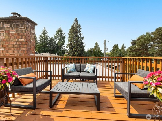 Unbeatable value in North Beach. Seller offering $20,000, towards closing costs. Beautifully maintained 4BR/3.5BA home has 2,580 square feet of light-filled living plus a 1,980 square foot garage/basement with 11-ft ceilings & I-beam construction-perfect for cars, boats, a gym, or hobbies. Open-concept design features a flowing kitchen, dining/living room with gas fireplace & partial Sound view. Two main-floor ensuites provide privacy & flexibility. Upstairs offers a 4th BR with ¾ bath, kitchenette, & rooftop deck-great for office, guest suite, or ADU with optional private entrance. A rare blend of comfort, versatility, & space in a peaceful yet urban neighborhood, moments from restaurants, bakeries, and cafes. Check out attached 3D Tour!