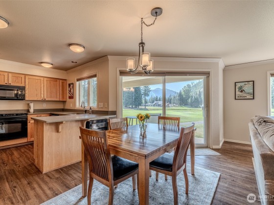 This fully remodeled condo sits off the 1st green with stunning golf course and mountain views and includes most furnishings. In the winter the course becomes groomed x-country ski trail w/ separate snowshoe trail right out your back door! All of which tie into vast trail system that will take you up Nason Ridge or down to LK Wenatchee. A short walk to Lake Wenatchee ST Park and a 30 min drive to either Stevens Pass or Leavenworth makes this the CENTER of outdoor recreation! This unit also has a coveted private garage available for additional $43K with Buyer getting first opportunity to purchase. Community has a rec center with indoor pool, golf pro shop, driving range, BB court, tennis/pickleball court, and Wildflour Restaurant.