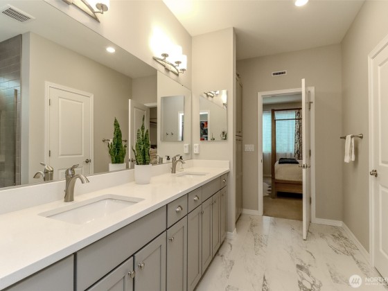 Pristine, Luxe, like new best describes this green belt premium lot 1928 sq ft home in the 55+Trilogy section of Tehaleh. Built in 2022 by Shea Homes the Reunion plan offers a wide entry that flows seamlessly into the living area. Large living room and a dedicated formal dining that looks out onto a serene, private back yard. Chefs kitchen with upgraded top of the line appliances, huge island and large pantry. Office/ Den with glassed in French doors. Primary bedroom and bath with beautiful tile and walk in closet, also upgraded! 2nd bedroom with adjacent bath that is anything but standard. Utility room with tons of storage and handy utility sink. Step out onto the covered patio and you will quickly see how very special this property is.