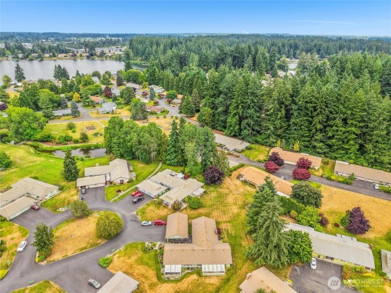 This beautifully maintained and recently renovated turn-key 2-bedroom, 2-bath, 1,216 sq ft one-story condo is ideally located in the heart of Lacey with quick access to I-5, shopping, dining, and medical services. Tall windows fill the home with natural light, while energy-efficient heating and A/C keep you comfortable year-round. The open-concept layout features a spacious kitchen with rich cabinetry and granite countertops. Enjoy low-maintenance living with a private patio, lush green space, and views of the community pond. Located in a peaceful, well-kept neighborhood with available RV parking—this Vista Village condo offers comfort, convenience, and charm! Set in a highly desirable, safe and peaceful location.