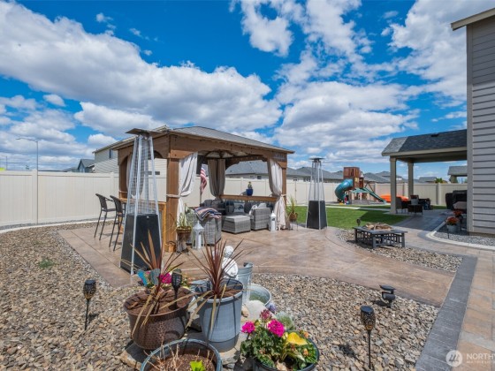 Not only is this a lovingly maintained home, but an amazing private back yard that has been setup for entertainment for all ages. Come take a look at today! Located on a large corner lot this home has an open floor plan that invites you in, with electronic fireplace in living, large dining area, wonderful kitchen with quartz countertops and undercounter lighting. Large primary bedroom, with attached bath with both shower and tub, plus walk-in closet for a cozy retreat. 3 more large bedrooms and full bath located on upper floor. You will find a separate area for RV/boat parking that is ready for you. Backyard lighting throughout including the Cabana and entertainment area, (100 amp service in back). Make an appointment today!
