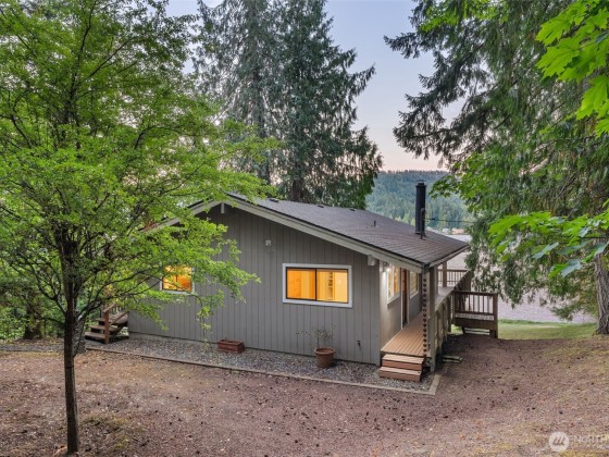 An exceptional opportunity to own THREE stunning parcels that together create the ultimate Summit Lake getaway or full-time residence. Showcasing 145 ft of zero-entry, grassy shoreline, this property offers effortless access to the waterfront, perfect for swimming, boating & savoring the serene lake views. The charming 2bd, 2ba cabin provides a warm & inviting retreat, featuring wood burning fireplace, great room w/ generous kitchen & a covered deck plus patio. Expansive open grounds easily accommodate parking for visitors, RVs & all your water toys, complemented by a lower-level garage for additional storage. With ample space to expand, this rare offering invites you to create lasting memories & enjoy the very best of Summit Lake living.