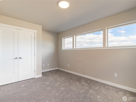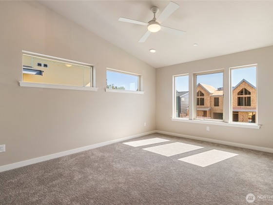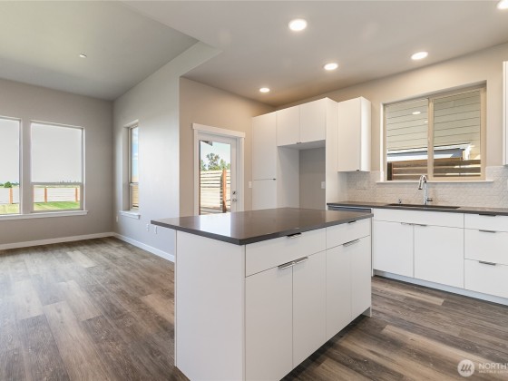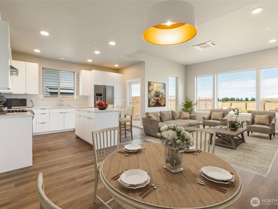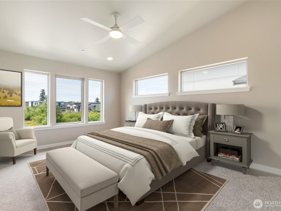 Welcome to Northview 2 in Cordata, Bellingham's premier solar home community! This stunning 2-story contemporary home features an open and spacious floorplan, a custom kitchen with sleek quartz countertops, and a primary suite with a private ensuite boasting a double sink and walk-in closet. Enjoy two additional bedrooms plus a versatile den/office that can serve as a possible fourth bedroom. Built with sustainability in mind, it offers efficient mini-split heat pumps with A/C, a low-maintenance yard, a covered patio, and EV charger prewiring. Take in mountain and golf course views. Includes a 2-car garage. Your dream home awaits—secure yours today!