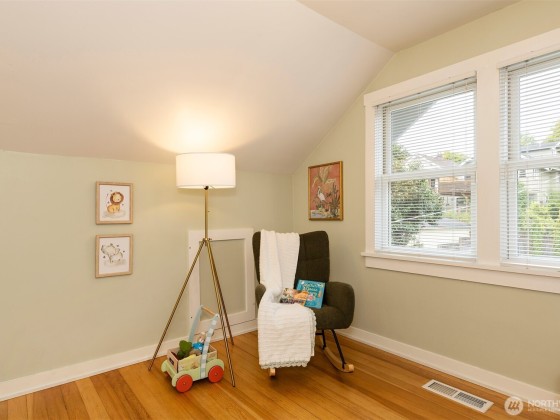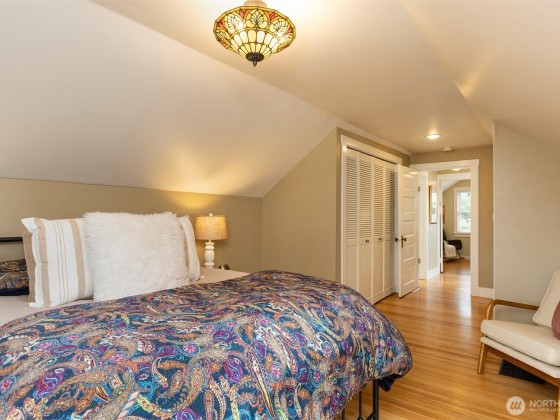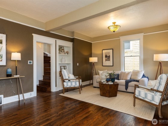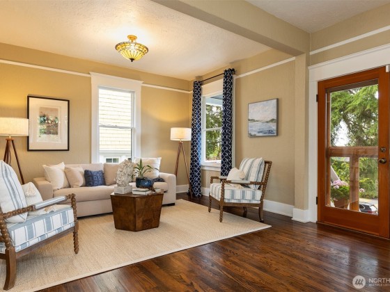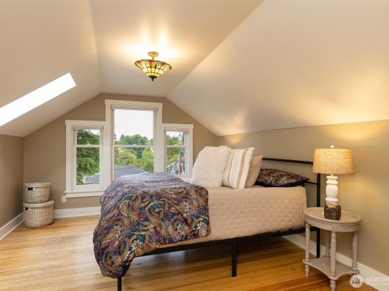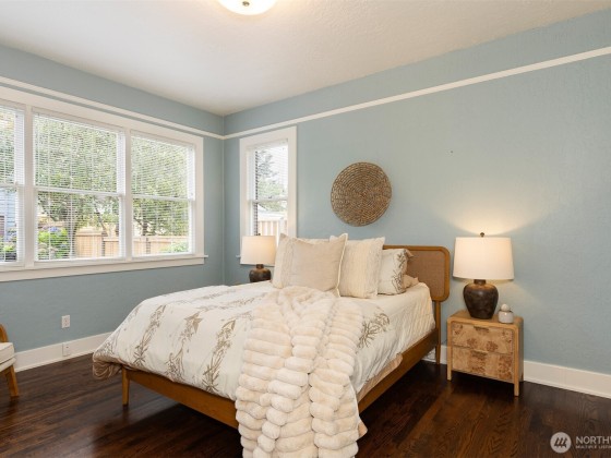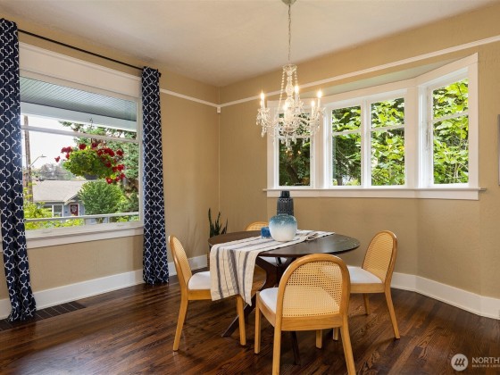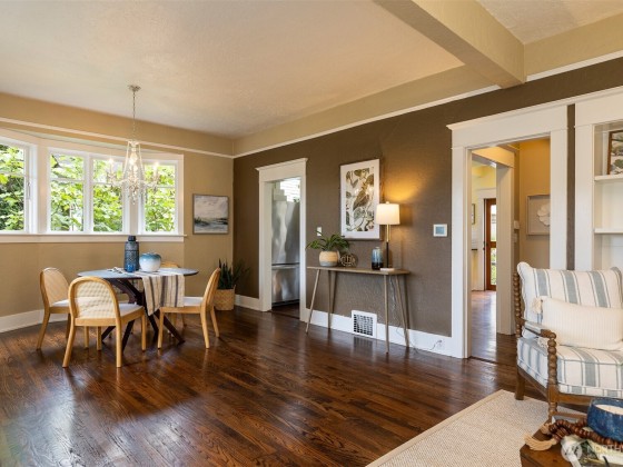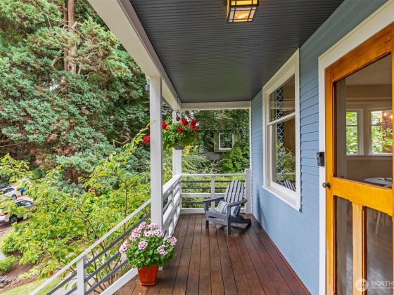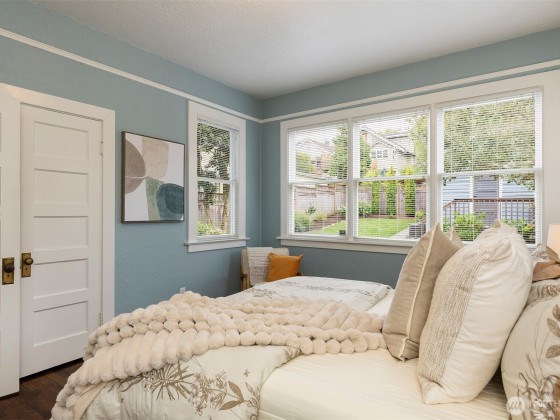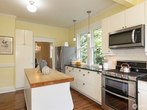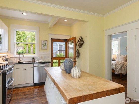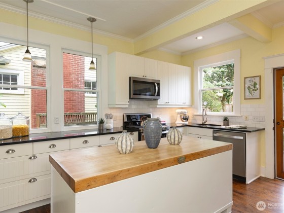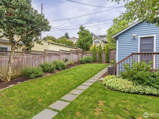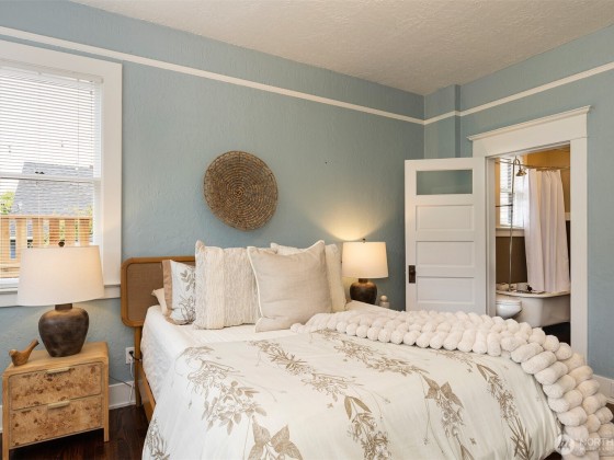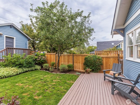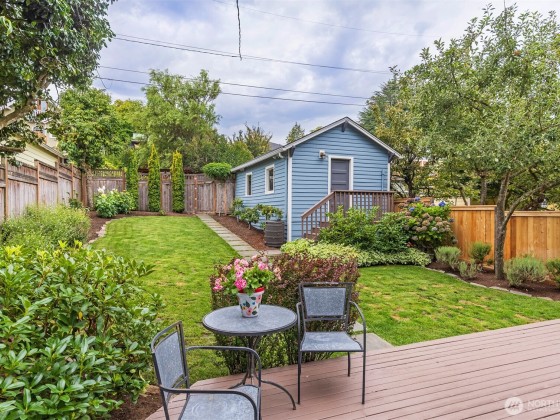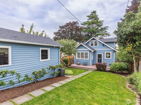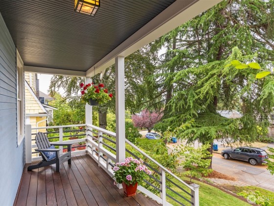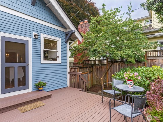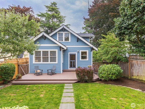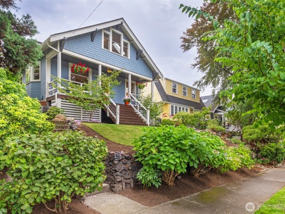 This beautifully maintained and thoughtfully updated Queen Anne Craftsman, perfectly perched above the street for added privacy presence. Step inside to a light-filled open living and dining area, featuring high ceilings and timeless character. The main floor offers a spacious bedroom, a full en-suite bathroom, ideal for guests or a home office. Upstairs, you’ll find 2 additional bedrooms & a stunningly modern full bathroom. The Chef’s kitchen is a true highlight, featuring granite countertops, abundant cabinetry, & a charming antique butcher block island—perfect for preparing meals & entertaining. Enjoy the level, fully fenced backyard complete w/ mature fruit trees, detached garage wi/alley access, and room to garden, relax, or play.