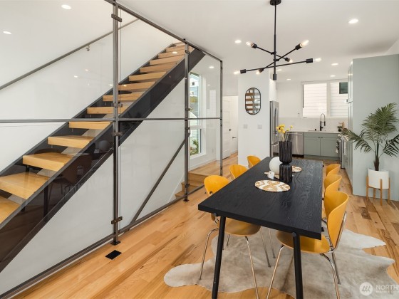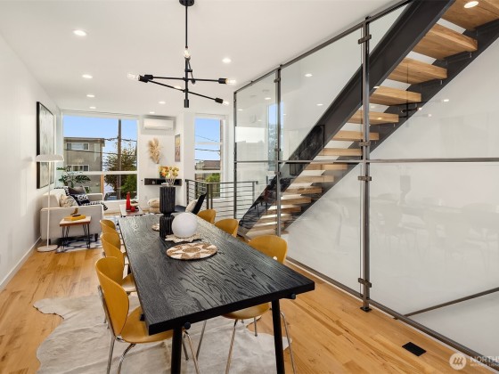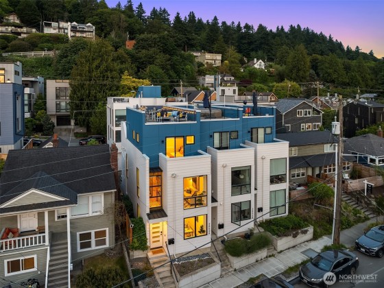 Nestled on one of Seattle’s most iconic waterfront streets, this modern stunner dazzles—soaring ceilings, walls of glass, open staircases & radiant concrete floors create a gallery-like backdrop for iconic Puget Sound views! The sleek Bosch kitchen flows into airy living spaces, while a chic primary suite + 2 versatile bedrooms offer serene retreats or the ideal office/den. The rooftop deck is a showstopper—twinkling lights, golden sunsets & sweeping west-facing views of the Olympics & Seattle skyline. Just steps to the beach path to launch your kayak or paddleboard, this home embodies the ultimate beach lifestyle. AC, 1 parking, storage & curated designer updates make it move-in perfect. This Beach Drive jewel box WOWS!