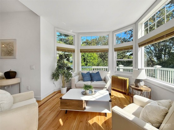 Discover a charming Victorian-style home nestled in the desirable Arboretum/Madison Valley neighborhood. it offers a peaceful retreat just above street level. The open-concept main floor is ideal for entertaining, featuring a seamless flow between the living, dining, and kitchen areas, all opening onto an expansive deck with lovely views. The entire third floor is dedicated to a luxurious Primary Suite, complete with a walk-in closet, spa-like bathroom, and private balcony. Off-street parking for two vehicles. Enjoy ample outdoor living with a sprawling wrap-around porch, a side patio, and a cozy fire-pit area in the front yard.