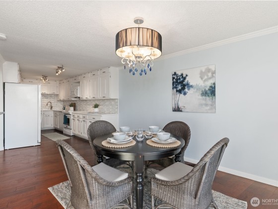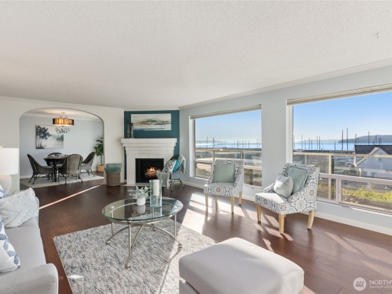 Gated community of South Shores, overlooking the beautiful Des Moines marina! Beautifully updated, single-level 3-bed, 1.75-bathroom condo offers an unrivaled combination of comfort & style. Take in the stunning views of the Puget Sound and Olympic Mountains right from your living space. Cozy up by the inviting gas fireplace or step outside to your expansive patio, perfect for sipping morning or soaking in vibrant evening sunsets. Nestled within a secure gated community, this home grants you exclusive perks, including a private in-ground pool & reserved covered garage. With its seamless blend of modern convenience, luxurious touches, & natural beauty, this property is more than a home. HOA includes, Water, Sewer, Garbage, Cable & more.
