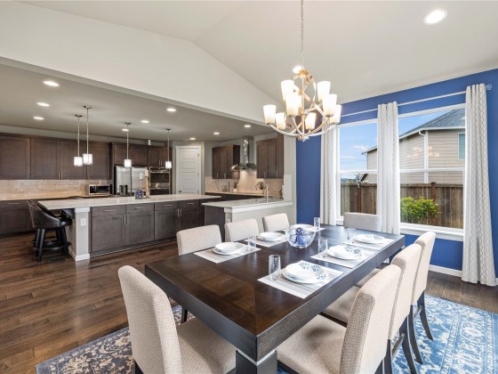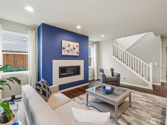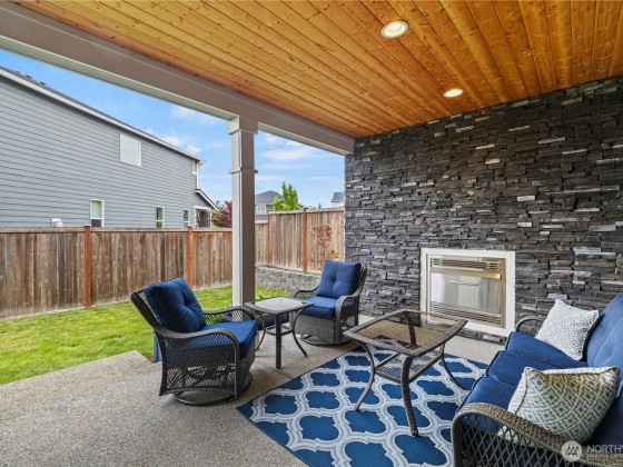 Richmond American Alexa plan w/covered front porch & main floor living w/10 ft ceilings. Enjoy a great room with modern fireplace, den/office, gourmet kitchen w/oversized island, walk-in pantry, & large dining area. Upstairs offers a convenient laundry room w sink, 4 generous beds, elegant primary suite w/en-suite & large custom walk-in closet. The loft can be converted to a 5th bed. Fresh neutral paint & soundproofing throughout, downstairs includes stunning deep navy-blue wall accents. The back covered patio & gas fireplace offers the perfect setting for outdoor relaxation. Enjoy an easy care yard w/sprinklers, 3-car insulated & expanded garage, 98% furnace, AC & Pre-Inspected.