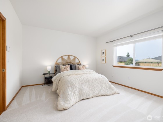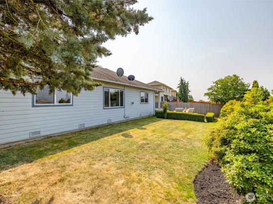 Meticulously maintained rambler in the tranquil and pristine Candle Ridge neighborhood, with scenic walking trails and parks. Enjoy the morning sun and spectacular sunsets with peek-a-boo views of Skagit Bay and the Olympics out of your kitchen, living room, family room and expansive primary suite. Beautiful picture windows stream in natural light throughout the home. Fresh paint, new carpet, and the owner’s careful living, make this home feel new inside. The new deck is perfect for a hot tub or outdoor living/entertaining space. Fully fenced back yard, walk-in tile shower, AC. Easy access to the delightful downtown Stanwood, coastal and mountain activities and I-5. This is a must see!