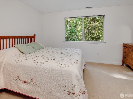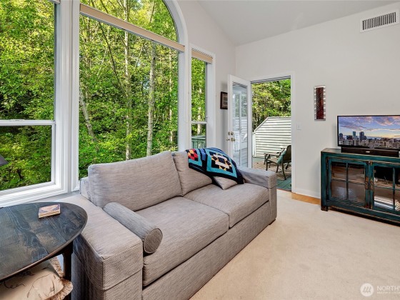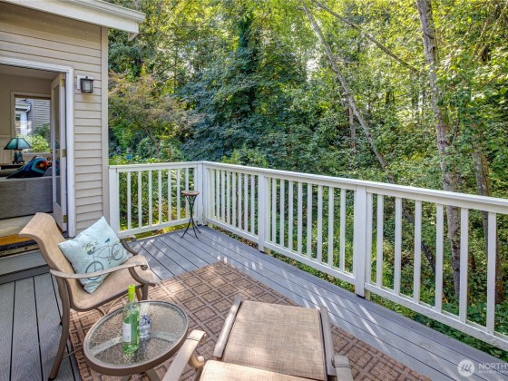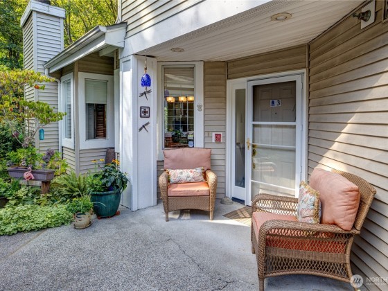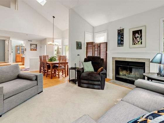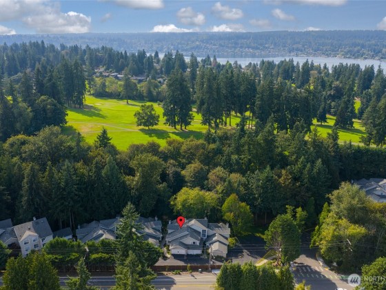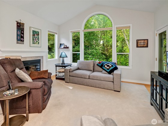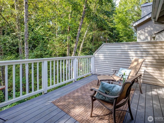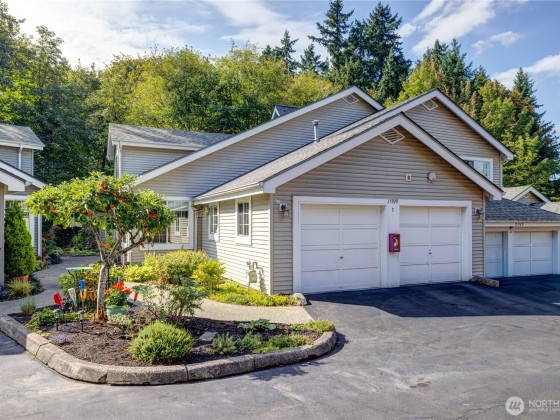 Light-filled, updated three-bedroom, 2.5-bath townhouse located in Canterbury at Inglewood along the Inglewood Golf Course. Enjoy fantastic natural light and private views of lush green space and golf course from large windows and private back deck. Main level features living space with vaulted ceilings, skylight and wood fireplace, primary suite w/walk in closet, dining room and large kitchen with eating nook. Zero step main level! Flexible upper level with 2 beds and a full bath, perfect for guest space, home office or hobby room. Large 2 car attached garage with built in shelving... so much storage space. Relaxing, private location close to St Edward State Park and Burke-Gilman Trail with easy access to 522, Seattle, Kirkland and more!