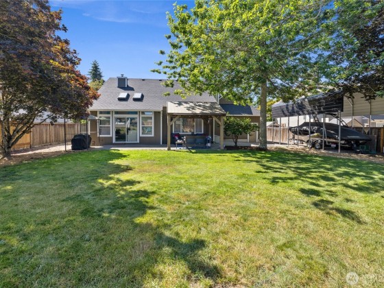 Welcome to this beautifully crafted home, designed for comfort & versatility. Stylish updates include new LVP flooring & an inviting kitchen with a delightful bayed nook. The formal living & dining rooms offer refined spaces with a double-sided fireplace. The main level primary suite is a peaceful retreat, complete w/ generous 5-piece ensuite. Upstairs, you’ll find 2 additional bedrooms +bonus room, perfect for an office. Step outside to a large, park-like backyard featuring mature trees, gazebo & two sheds for all of your storage needs—an ideal setting for relaxation or outdoor gatherings. RV/boat canopy, gas heat, generator, dog wash setup in garage & newer roof.