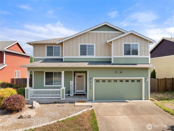 Welcome to this beautifully updated home featuring 4 bedrooms, a spacious bonus room, and 2.5 baths. The open layout showcases brand-new LVP flooring, modern light fixtures, and granite tile countertops with plenty of cabinet storage. Enjoy cozy evenings by one of the two fireplaces or relax outdoors on the patio with stunning Mt. Rainier views. The fully fenced spacious backyard is perfect for entertaining or quiet mornings. Complete with A/C, a 2-car garage, and access to walking trails, this home offers the ideal blend of comfort and convenience just minutes from shopping, dining and JBLM.