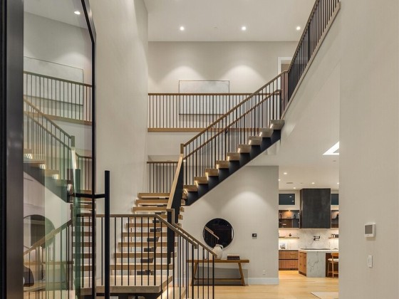 Step through a custom glass pivot door into a masterpiece by Chaffey Custom Construction and McCullough Architects. This 5-bedroom, 5.5-bath home includes two private offices, a fitness studio with infrared sauna, and a luxe theater. Wide-plank white oak floors flow throughout both levels of the open-concept design. The stunning kitchen is elevated by a thoughtfully designed pantry and scullery. The primary suite offers a serene retreat with floor-to-ceiling tile, mirrors, and dual walk-in closets. Outfitted with Sub-Zero, Wolf, Kohler, and Brizo and powered by solar, this smart home features Lutron lighting, motorized shades, and turnkey audio/video/security. Wired with Cat6 data cabling and Wi-Fi 7. A rare blend of innovation and elegance