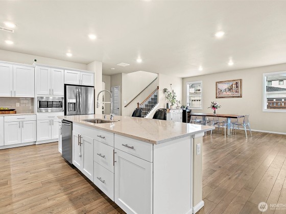 Discover one of Tehaleh’s most versatile floor plans at Eagle Ridge. Built for the way you actually live. With 5 bedrooms, 3 baths, and over 3,500 sq ft, this home offers rare flexibility: a guest suite on the main, a private office for remote work, and a loft upstairs for media, play, or relaxation. The chef’s kitchen with oversized island and walk-in pantry connects seamlessly to the great room and extended covered patio, creating the perfect flow for gatherings. Retreat to the expansive primary suite with spa-inspired bath and massive walk-in closet. Central A/C, tankless water, and a fully fenced yard add everyday comfort. Steps from trails, parks, and top schools, this home delivers the space and lifestyle others can’t match.