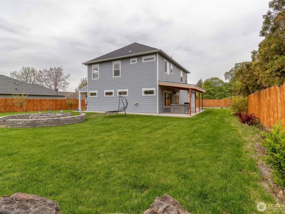 Tucked away on a quiet, oversized lot, this stunning contemporary 2-story home blends luxury and comfort with 5 spacious bedrooms and 3 bathrooms. The open-concept living room features a cozy gas fireplace, flowing into an elegant dining area and gourmet kitchen with white cabinetry, grey quartz countertops, stainless steel appliances, and a walk-in pantry. A main-level bedroom offers flexible living, while the upper level boasts generously sized bedrooms with large closets. Enjoy upgrades like a tankless water heater and new mini split. The fully fenced backyard is an entertainer’s dream with a covered patio, hot tub, firepit, and raised garden beds. Ample parking, RV space, and 2-car garage complete this exceptional property.