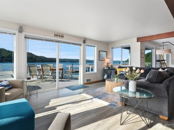 Located on the shores of Hood Canal at Union you will find this modern waterfront property where breathtaking views and private dock access await. Whether you’re enjoying a peaceful morning on the deck or launching kayaks to go exploring this home is the perfect retreat for relaxation and outdoor adventure. Inside, the bright and airy living spaces frame panoramic water views, ensuring every moment is filled with the beauty of nature. Features 3 bedrooms, 2 baths and a dynamite layout that make this home ideal for a weekend getaway or full-time living. Updated throughout including triple pane glass, new heat pump, Hardie exterior, EV charger, upper and lower decks, most furnishings included. A rare opportunity to own a piece of paradise.