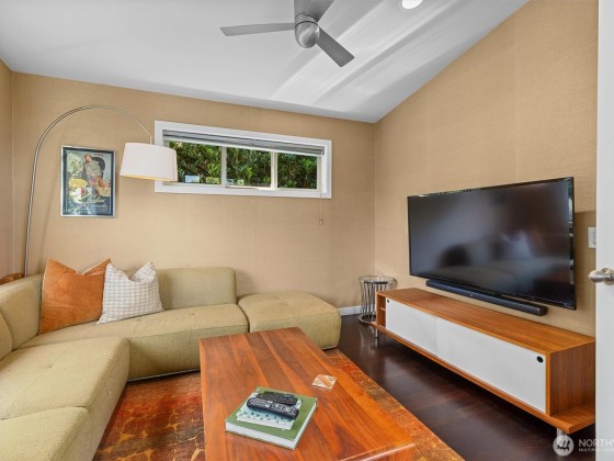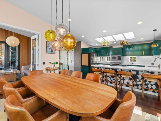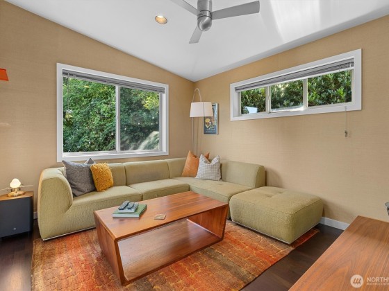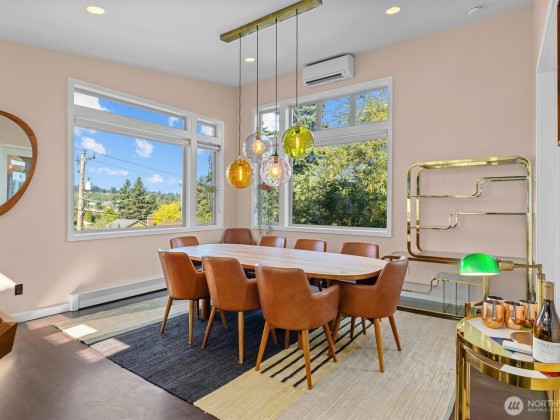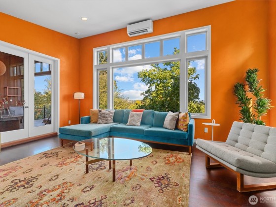 Just two blocks above Columbia City’s historic district on a tranquil street, this stunning home blends privacy, convenience, and charm. An open floor plan with soaring ceilings and large windows creates a treehouse-like feel among native greenery. The covered patio offers year-round enjoyment with views of Mount Baker and Lake Washington. The chef’s kitchen features a gas cooktop, quartz counters, and premium appliances. The primary suite includes a spa-inspired bath and blackout treatments for restful nights. A private porch with gas fireplace adds cozy outdoor living. Carefully curated finishes, hardwood floors, updated A/C, and EV charger complete the home. Minutes to Lake Washington, Seward Park, shops, dining, light rail, and cafes.