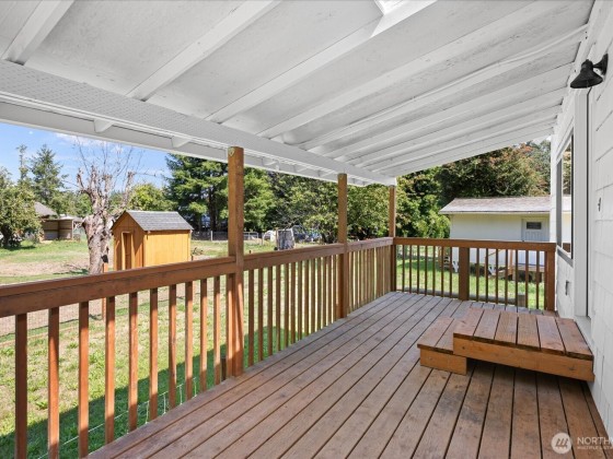Discover a blend of modern updates and tranquil living in the serene Skokomish Valley! This 1.5-story craftsman, situated on a spacious 13,939 sq ft lot, has been thoughtfully upgraded. Step inside to find beautiful multi-toned wood flooring, new interior paint, and recessed lighting. The updated kitchen and unique bathroom, featuring a bidet-equipped toilet and a tiled shower with an artistic shelf, are highlights. Outside, enjoy a covered porch and a fenced yard. A versatile shed with electricity and lighting provides a perfect space for a studio, workshop, or storage. While already a peaceful retreat with a shared well and 2-bedroom approved septic, this property can be further updated to create your dream home! Don't miss out!