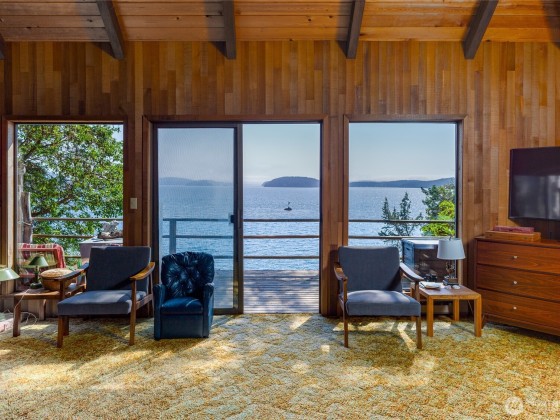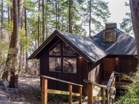 Exceptional waterfront property with private accessible beach in the desirable Shag Rock community! The sunny southerly exposure offers enchanting views of the Salish Sea, Lopez, Blakely, and Decatur Islands. The rarely available private beach with existing access is ideal for launching kayaks or SUPs, beachcombing, or evening bonfire. A cozy 2 bedroom, 1.75 bathroom home with a loft sits close to the waters edge with large windows to enjoy the views from inside. Upper and lower decks provide a space to experience nature and the scenery outside. A short drive from the ferry and 10 miles from Eastsound, this property offers privacy, seclusion, and raw beauty. Ready to move in, or update the finishes and make this a true island gem!