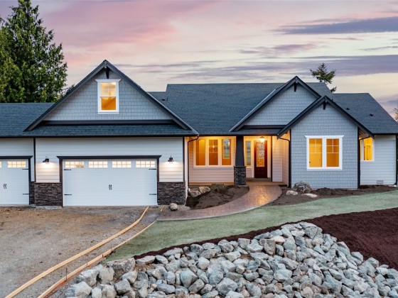Brand new single-level home with spectacular views of the Cascades, Olympics, Skagit Valley, & San Juan Islands! Located in private gated community of Avalon Heights, this custom-designed home features 10FT ceiling heights, custom-made cabinetry throughout, magnificent vaulted great room, beautiful 14FT tall stone fireplace with stone hearth & mantel. An elegant 2742 SF home sitting on a level 1-acre with a huge covered patio facing sweeping views to the south & west. Flooring high-quality WPC Plank & carpet. Features 4 bedrooms plus large bonus room. Extra large 3-car garage. Great location only 7 minutes to I-5, 15 min to Mt Vernon, & 25 min to Bellingham. NOTE: HOA dues include water bill.