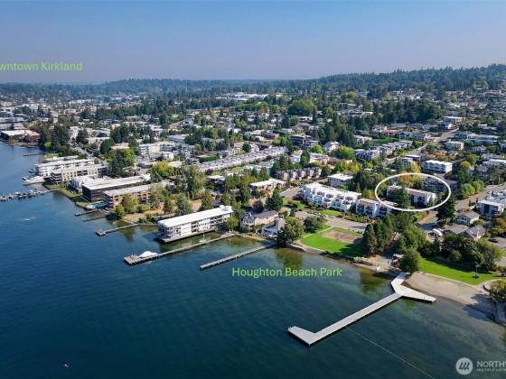 This is what you call a "lifestyle" home! Every day here is a vacation! Sunset Pointe is a quiet, 20-unit community next to Houghton Beach Park on Lake WA. Paddleboard at sunrise or take your morning walk along the lake. Meet friends for brunch at Beach Café next door. Easy stroll to pubs & fine dining at Carillon Point. This incredible, top floor, west facing condo has lake, mountain & Seattle skyline views. Watch 4th of July fireworks & glowing sunsets from your private balcony. Beautifully refreshed w/ designer Farrow & Ball paint & new Karastan carpet. 2 prking spots + storage unit. Commuter's dream location! 2 Mins to 520 fwy. 3 Blocks to KCC trail which links to Google & Lakeview Elementary. Experience the Kirkland beach lifestyle!