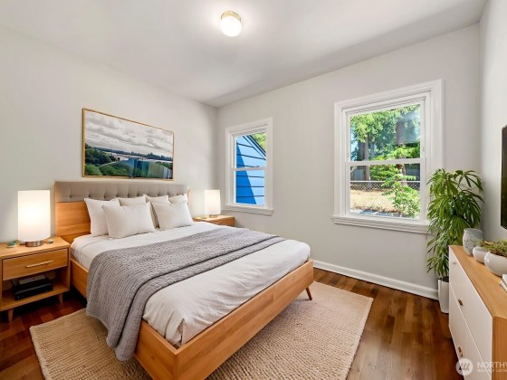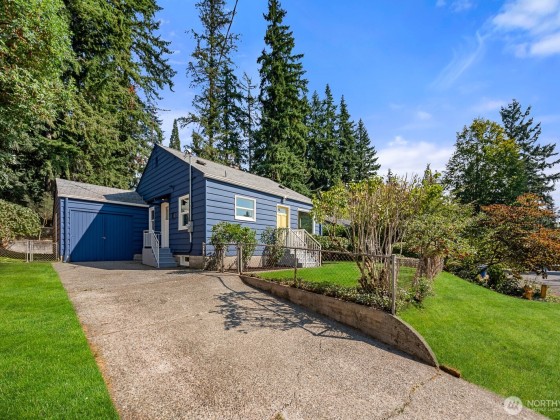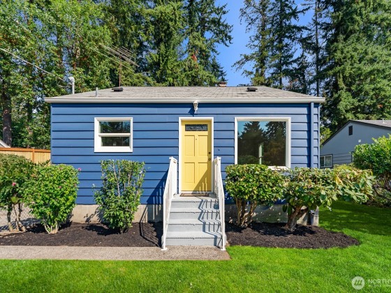 Welcome to Olympic Hills and this charming 1940's home. Brimming with character, this cheerful home has been freshly painted in and out just for you! Sited above the street on a spacious 7,800 Sq Ft lot, there is so much potential. This inviting home features a gracious living room with beautifully stained hardwood floors, a traditional fireplace, and is naturally lit with double pane windows. The kitchen has been refreshed with a new quartz countertop, stainless sink, fixtures and flooring. Full bathroom has been updated with a new vanity & more. Basement features a finished bonus room/office, an open space for a future rec room & a long workbench. Pinehurst Light Rail is scheduled to open at NE 130th St in Seattle in 2026.