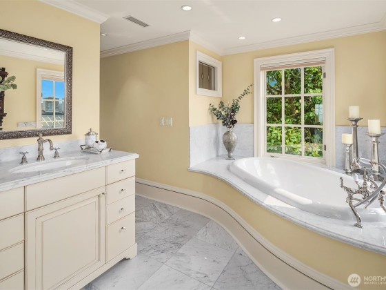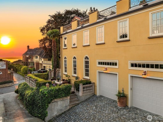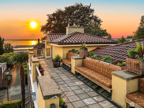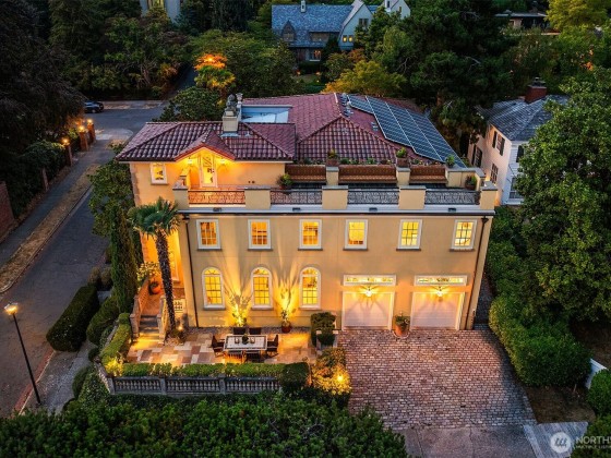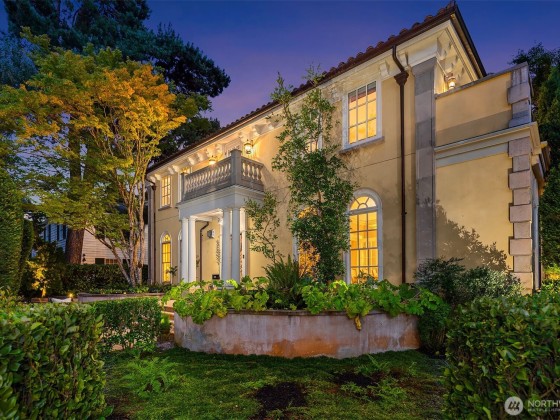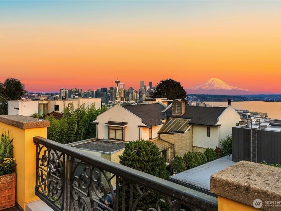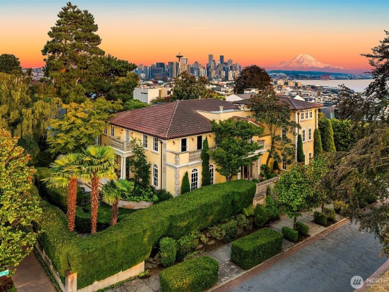 A rare offering with a coveted corner-lot setting on Queen Anne hill’s iconic West Highland Drive, this extraordinary Italianate-style mansion harmoniously presents modern luxury living with Old World elegance. Extensively remodeled in 2003, this exquisite property has been lovingly maintained & improved to perfection. Step through the ornate, wrought-iron gated entry into enchanting courtyards, balustrade-lined terraces & captivating mature landscaping. Italian renaissance-inspired interiors feature grand entertaining spaces, soaring ceilings, Venetian plaster walls, Fortuny fixtures & radiant-heated marble flooring. Rooftop deck w/ spectacular sweeping view of Seattle skyline, Mt. Rainier & Elliott Bay. Elevator, A/C, EV charging & more!
