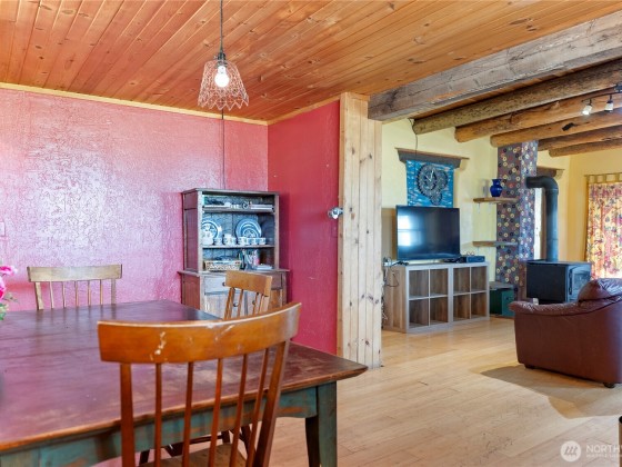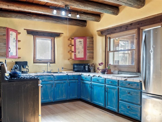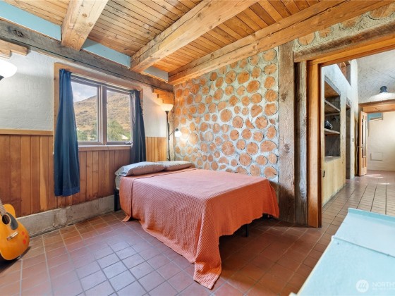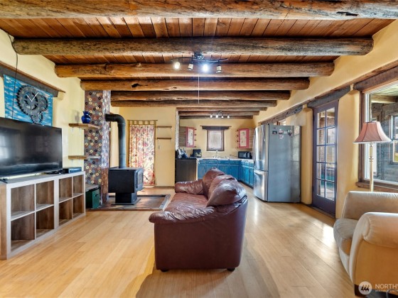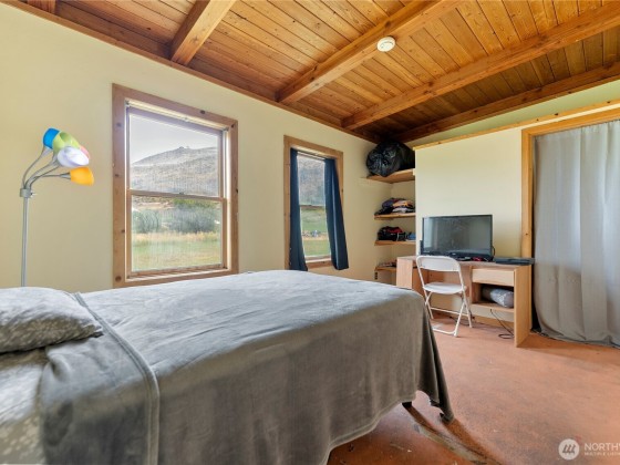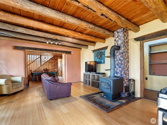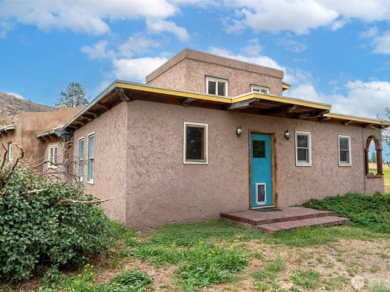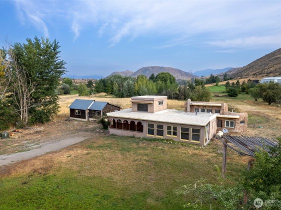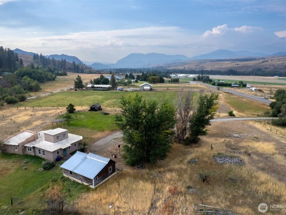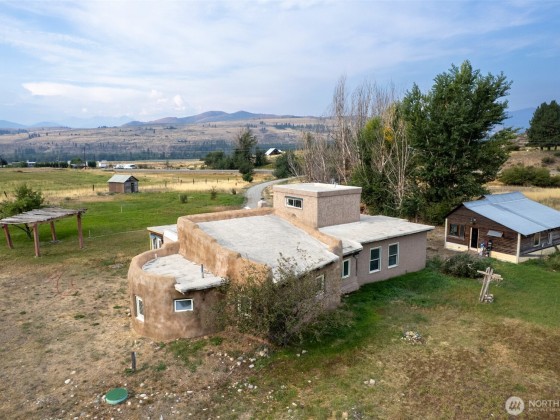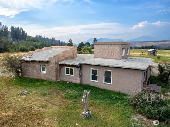 Bring your vision and build equity! This distinctive 1989 Winthrop home, crafted by local builder Doug Potter, showcases lasting quality with open beam ceilings, thick stucco walls, and artistic stacked log accents. Offering 3 bedrooms, 2 baths, a spacious laundry room, partial basement, and a light-filled second-floor study overlooking pastoral views, the home provides ample space for full-time living. This 3.7-acre flat parcel, irrigated by the Chewuch Canal, has the potential to become entirely green and could easily support a hobby farm or garden. A 875 sq ft outbuilding with power is ready to transform into an office, studio, or gym. Thoughtful improvements here will reward you well in this beloved corner of the Methow Valley.