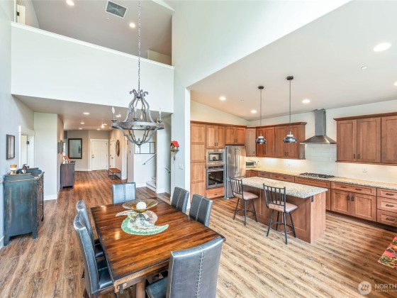 Experience condo style living without high monthly dues. No yard work means more time enjoy all the Wenatchee Valley has to offer. Soaring ceilings and expansive windows fill the space with natural light. The main floor features everything you need on one level. Exquisite primary suite complete with double sinks, a luxurious tile shower, and a walk-in closet, along with access to a private courtyard. The spacious kitchen is a chef's dream, showcasing a generous center island and ample cabinetry, seamlessly flowing into the inviting living room. Lower level features an amazing guest space complete with kitchenette and private deck. Upper level features two more bedrooms, bathroom and billiard room. See floor plan in photos