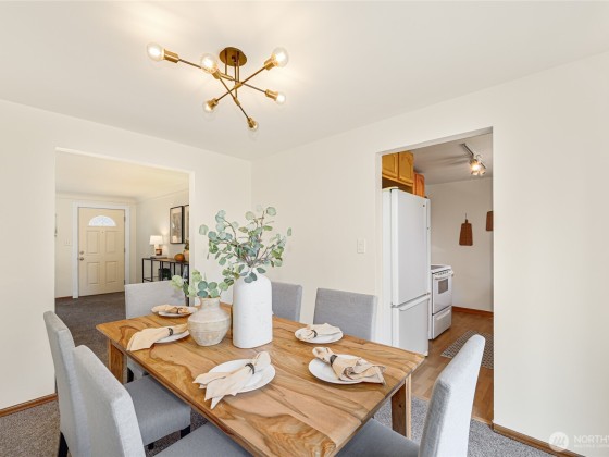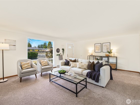 Lovely one level, 3-bed, 1-bath home, move-in ready located in sought-after south end of West Seattle on expansive 8,000 sq.ft. plus lot. Enjoy a spacious living room, dining room, refreshed kitchen with new countertops, SS sink, and brand-new carpet and paint throughout, with refinish-able hardwood floors under carpet! The large and level backyard with patio is drenched in sunlight—perfect for entertaining, gardening, or relaxing. Spacious garage plus storage loft, additional off-street parking adds extra convenience. R18 Zoning allows for development potential, buyer to verify. Located near parks, shops, transportation options, this centrally positioned home offers both comfort, room to grow, and accessibility. A must-see!