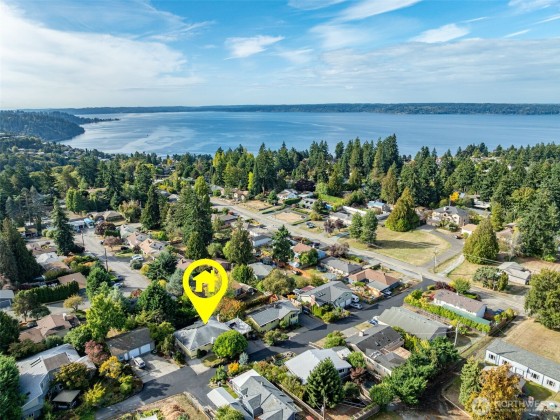 Welcome to this beautiful mid-century home in Shorewood, w/ the bonus of a freshly paved dead-end street for curb appeal & smooth access. Enjoy a quiet setting w/ territorial & peekaboo Puget Sound views! This 4-bd, 3-bath home has space for everyone. Main level features a bright living room w/ fireplace, spacious dining, & access to a large patio for entertaining. The kitchen deck is perfect for BBQs w/ easy backyard access. Primary suite includes an en-suite bath + two more bedrooms on the main. Lower level offers a rec room, additional bed, bath, & laundry. Two-car carport w/ EV charger, 4kW solar, heat pump, shop space & storage complete the package. Minutes to I-5/Seattle, this home blends comfort, convenience & value.