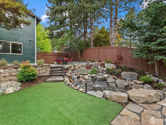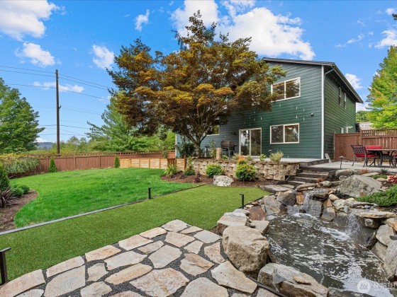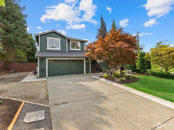 Beautiful corner home in Kasper Heights—bright, spacious, and move-in ready! The main floor features an open great room with living, dining, and kitchen areas, plus a walk-in pantry. A few steps down is a cozy family room with gas fireplace, half bath, and laundry. Upstairs offers a primary suite with ¾ bath, two more bedrooms, and a full hall bath. The finished basement includes a large bonus room, additional bedroom, and storage. Outside, enjoy a gardener’s paradise with a waterfall, patio, pet yard, front fountain, and lush rockery. New roof, updated HVAC with A/C. Close to trails, restaurants, Microsoft, City Center, and just 10 min to Redmond.