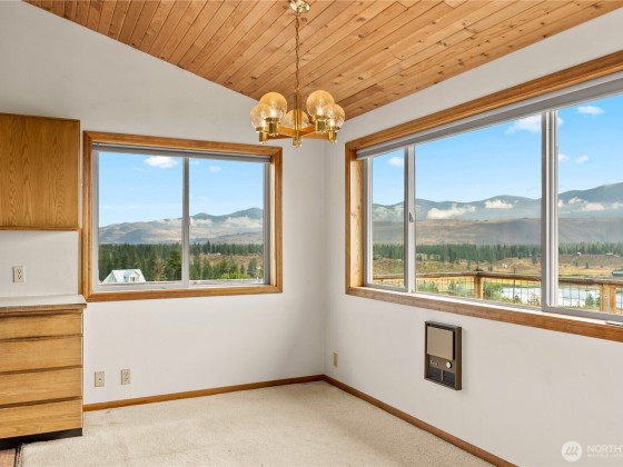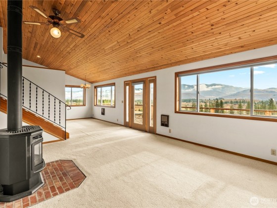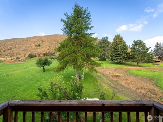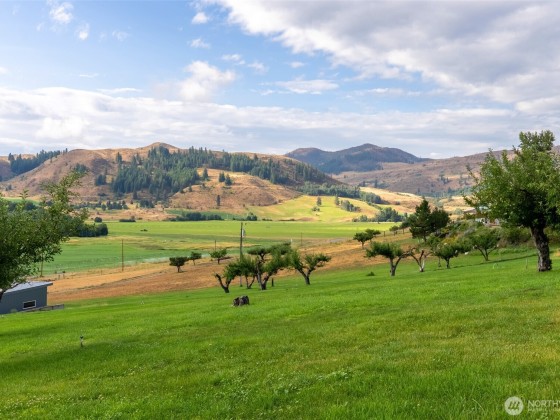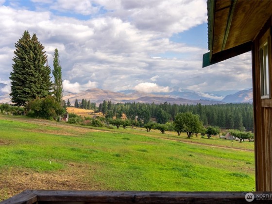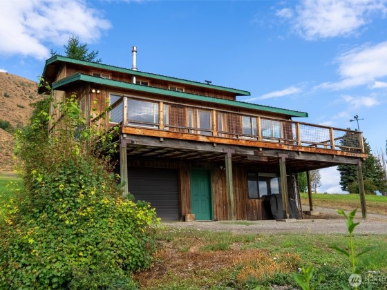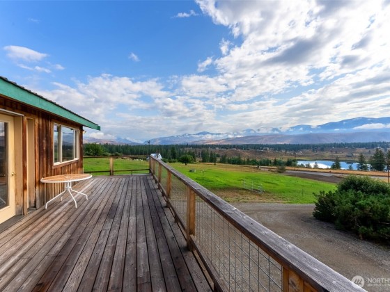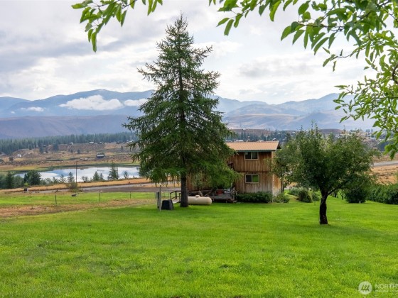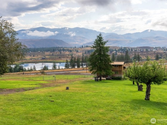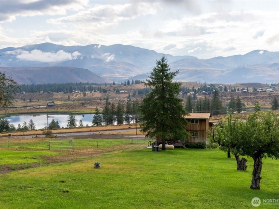 Twin Lakes View Home on 5+ Acres - just south of Winthrop, this 2 bedroom home overlooks Twin Lakes with sweeping views from front deck. The property features a spacious yard with fruit trees, garden area and direct western border with State Land. Practical amenities include an attached one car garage on the lower level and large equipment storage shed uphill from house. Handicap ramp on 2nd level. Enjoy close access to Patterson Lake, Sun Mountain Lodge and all the outdoor recreation the Methow Valley has to offer. Can receive internet connection.