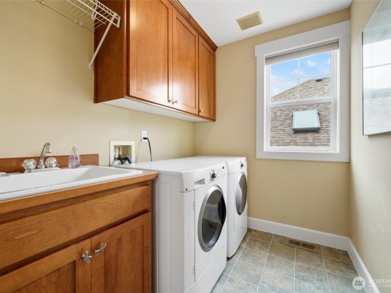 Experience refined living in this Lake Washington view home, ideally set in lower Kennydale’s coveted Clover Creek neighborhood. Soaring ceilings in the vaulted primary suite create a serene retreat with an exceptionally large walk-in closet. A chef’s kitchen and dining area flow to a private backyard oasis, designed for effortless entertaining. Upstairs, the media loft opens to a covered deck where sparkling lake views set the backdrop for relaxation. Modern comforts include abundant storage, whole-house vacuum, EV charger, and many newly-installed systems such as a new 95% efficient furnace, new 4-ton A/C, and new hot water tank. A rare blend of elegance, comfort, and premier location. See today!