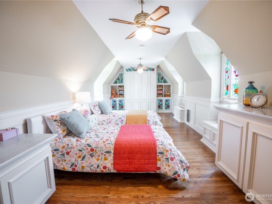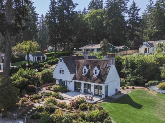 Charming 1931 Tudor on Lake Steilacoom with 130’ of private waterfront with magnificent gates at the entrance. Situated on 1.75 acres across three parcels, blending timeless craftsmanship with modern updates. Features include a main floor primary suite, 2 baths, an updated kitchen with granite countertops, stainless appliances, and an apartment above the detached garage. Expansive millwork, stained glass windows, window seat dining, and 2 fireplaces add warmth and character. The boathouse includes a kitchenette with pass-through serving windows, a cozy loft, a propane fireplace and a lakeside deck. Enjoy mature privacy landscaping, stone patio terraces, a private dock, sweeping lake views, and a rare combination of privacy and convenience.