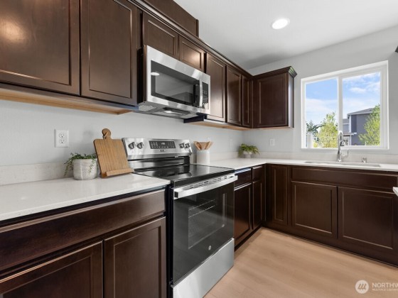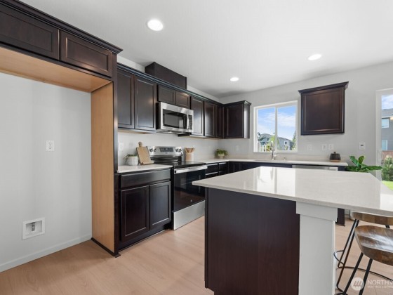 THE TYLER design B Plan lot 15 at the Serenity Trails community. At just under 1,500 sqft, this 4-bedroom, 2.25-bathroom 2-story home offers elegant quartz countertops in the kitchen, efficient stainless steel appliances, gorgeous laminate hardwood flooring and white painted millwork. The Serenity Trails community is ideally situated between the thriving cities of Marysville and Lake Stevens, this new neighborhood offers a commuter-friendly and inviting place with restaurants, schools and shopping within minutes. Thoughtfully designed floorplans and timeless finishes offer comfort and style. Enjoy the benefits of NEW! New home warranty, energy efficient, low maintenance, updated safety and modern lifestyle design elements.