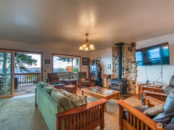 POPULAR WATERFRONT VACATION RENTAL Spacious 3 bed/3.25 bath home on the north shore of Orcas Island with beach access and a mooring buoy. Enjoy tranquil views of Mt. Baker and Canada from the large deck, or unwind in the private covered hot tub. Cozy living room with wood-burning fireplace, high-speed fiber internet, and a well-equipped kitchen. Two bedrooms and 1.5 baths on the main level, plus a third bedroom and bonus room upstairs. Sold fully furnished and turnkey. Ideally located just minutes from Eastsound and Moran State Park. A serene island escape with a strong rental history.