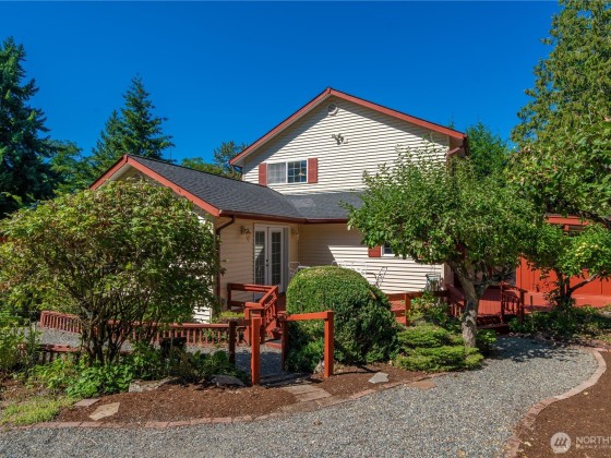 Back on market- buyer financing failed. Sweet opportunity to own a rare property that feels like the country while close to the city! This 2719 sq ft 5 bedroom 3.5 bath sits on a mighty 23,505 sq ft lot. Built in 2000 with a thoughtful layout and 2 primary bedrooms with attached bathrooms and walk in closets. Features include a well appointed kitchen with 2 sink/counter spaces, french doors off the main floor, walk in closets throughout, jetted tub, office space, laundry/utility room, 670 sq ft garage. Off the kitchen awaits a closed in porch that ties into an large exterior deck space. The lot includes mature landscaping throughout, fenced yard, entry gate and private drive. Don't miss the outbuilding with ADU possibilities and a gazebo!