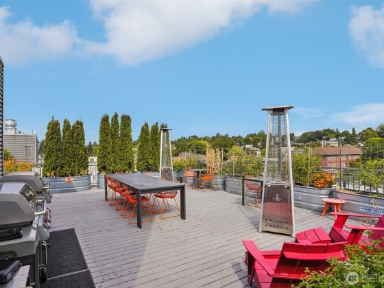 Welcome to the Brix – sophisticated & modern, it's Capitol Hill’s most sought after residences. This west-facing home is light-filled & features brand-new LVP flooring, new carpet & fresh paint throughout. Plenty of storage w/ walk-in closet, pantry, coat closet & custom built-ins w/ add'l closets & entertainment center. Full bath w/ oversized soaking tub. Secure garage w/ designated parking + storage unit. The rooftop deck offers sweeping city & Mt. Rainier views, community garden, lounge areas, fire pit, BBQs & pizza oven. With a Walk Score of 97, it's just a short stroll to cafes, dining, shopping & vibrant nightlife. About 3 blocks to Light Rail & Volunteer Park. Pet-friendly, well-managed & funded HOA, w/ on-site manager. A must see!