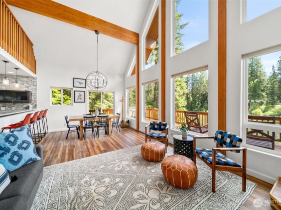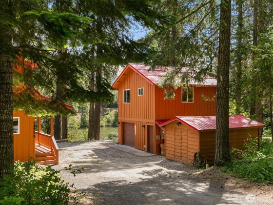 Tucked away on a stunning riverfront lot, this cozy chalet offers the perfect blend of peace, comfort, and outdoor adventure. Enjoy serene mornings listening to and watching the beautiful Wenatchee River flow by or evenings in the private hot tub overlooking the river. Discover year-round recreation just steps from your door. The warm, inviting 2 Bedroom, 2 Bath, main home features charm and scenic views, while the detached ADU garage provides flexible space for guests or a private studio. Almost everything stays including 2 small boats and the Honda UTV and trailer to make this getaway haven truly turnkey. Whether you are seeking a quiet retreat or an active lifestyle close to the peace and quiet of nature, this property delivers it all.
