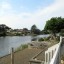 Big windows face west over the canal. Glass sliding doors off the dining area & the master bedroom. The back deck extends the width of the house. Open concept floorplan, 3 bedrooms/office space & 1-3/4 bathrooms.1,260 sqft with 70' of waterfront. Tons of storage, utility room, washer/dryer included & oversize garage. The back yard is a tiered blank slate to create your own landscape.