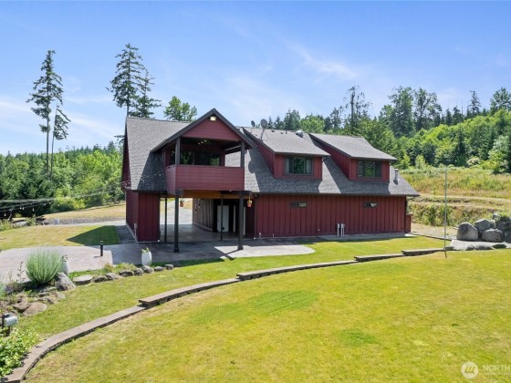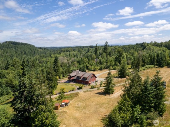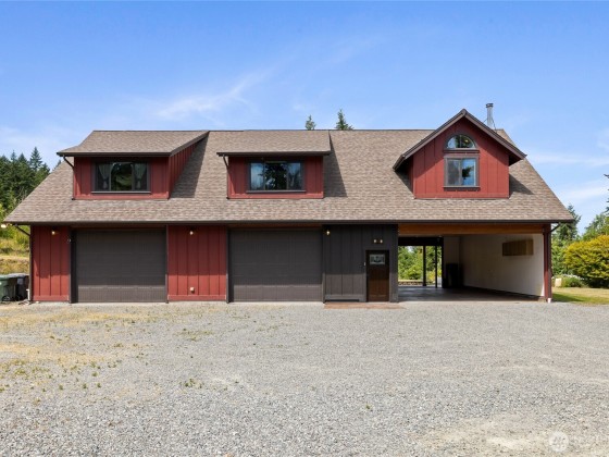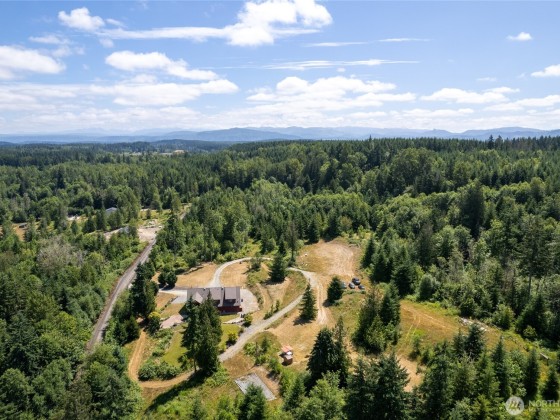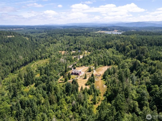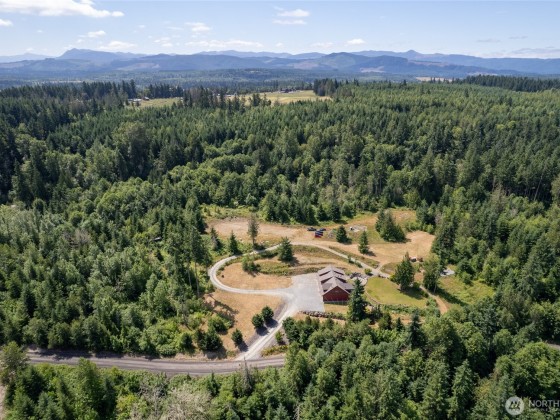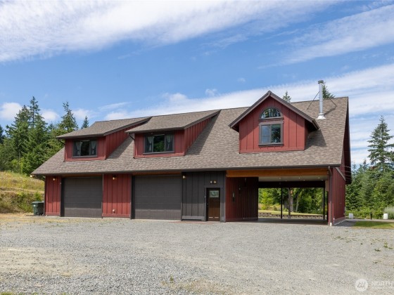 Welcome to Your Dream Retreat on Over 20 Acres! This custom home offers versatile living, craftsmanship & serene surroundings. The upper level sits atop a massive 40’x42’ insulated & heated garage/shop w/chain pots & ¾ bath. An oversized carport has exposed beams & 50 amp service. The upper level is thoughtfully designed. A spacious primary ensuite w/kitchen, wood stove, walk-in closet, large shower, + access to a 12x12 covered deck. Additionally, the upper area has an open concept w/a 2nd kitchen, dining, laundry, 3 beds & 1.5 baths. Newer HVAC system, well pump, & water filtration. Radiant wall heat, tankless hot water, stamped concrete patios, chicken coop, outbuildings, trails, lake access. Prepped ADU site for future expansion!