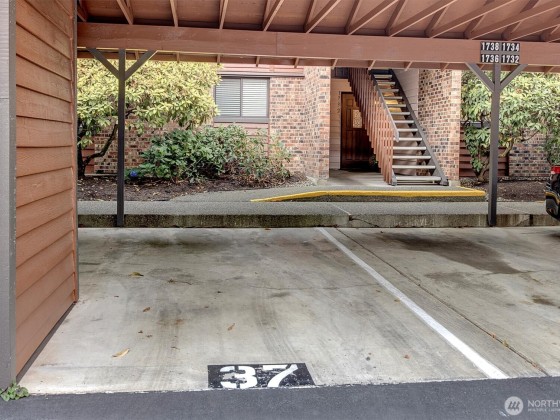 Price Adjustment! This quiet, ground floor unit has been freshly painted and offers updated kitchen with slab quartz countertops, newer white cabinets & subway tile backsplash. Same modern finishes were also used in both bathroom updates which features tons of extra storage. Generously sized primary bedroom with two closets and ensuite with amazing soaking tub. There are 2 designated parking spaces (1 covered) BOTH mere feet away from your front door. Relax on your private patio or in front of the fireplace on chilly nights. Amazing storage. In-unit laundry hookups. Minutes away from Microsoft, Crossroads Mall, Light Rail station. Attentive HOA. Pet friendly/some restrictions. Seller offering up to 2% seller concessions to qualified buyer.