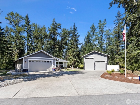 New price + motivated seller creates an incredible opportunity for instant equity. Custom-built rambler on a full acre is where timeless craftsmanship meets modern sophistication. The heart of the home shines with a designer kitchen featuring quartz counters, an oversized island + premium finishes. Two elegant & inviting living spaces invite connection, centered by a warm gas fireplace & custom-built ins. The property - curated landscaping, night lighting + a fully fenced yard creates a private retreat. 2 car garage + The 24x40 shop offers endless versatility - RV, boat, home business, or future ADU - all in a private, tree-lined setting designed for peaceful living, yet close to important amenities. Nothing else on the market like this!