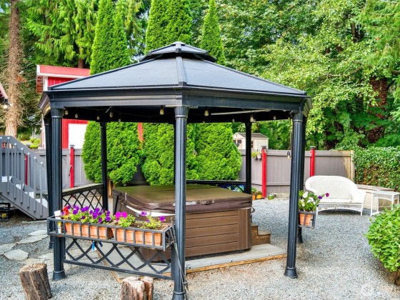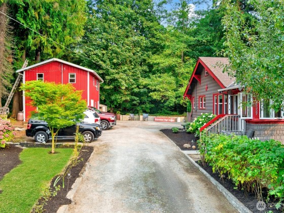 Charming craftsman with a 2004 foundation, thoughtfully updated to retain original character. Features newer appliances, walk-in pantry, quartz countertops, updated windows, and luxury laminate flooring. Peaceful gardens offer fruit trees, berries, and a variety of flowers, plus a hot tub, gazebo, and terraced views. The detached shop/guest quarters (~2010) includes 1120 sqft of finished space, a guest quarters, 3/4 bath, laundry, and workspace, all heated by a heat pump. The main home adds a 128 sq ft sunroom/mudroom for a combined total of 2088 total finished sqft of living space. Just minutes from town on a beautifully manicured, private ¾-acre lot. A gardener’s dream!