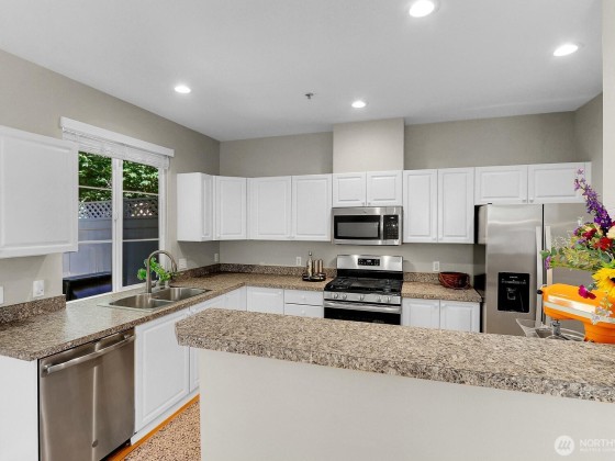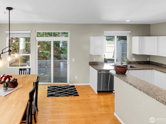 This beautifully maintained 3-bed, 2.5-bath townhome, over 1800 sf, of comfortable, light-filled space. Step inside to discover a bright and spacious living room, and kitchen with large eating area, leading out to the private patio area backing up to a green belt. Upstairs, you’ll find three spacious bedrooms, including a serene primary suite with a private bath and walk-in closet. The versatile bonus room on the lower level offers endless possibilities. Additional highlights: attached 2 bay garage, in-unit laundry, A/C unit for these PNW Hot summer days Ideally situated just minutes from major freeways and close to shopping, dining, and everyday conveniences, this home offers both comfort and accessibility.
